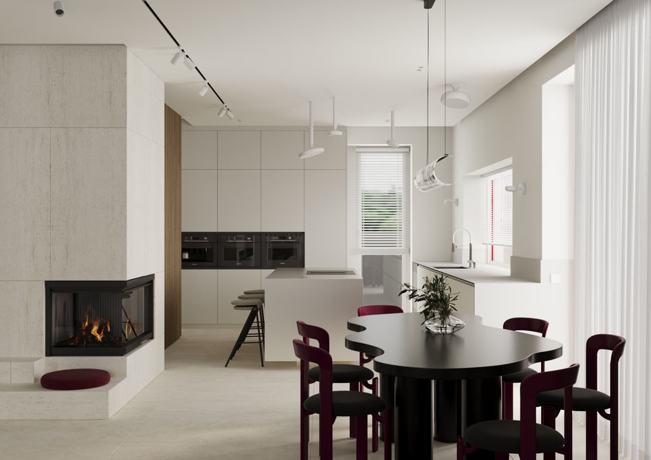 Рельєф завжди диктує умови, тому важливо вміти використати їх собі на користь. До вашої уваги будинок для сім’ї яка цінує великі простори. За рахунок перепаду рельєфу в 6 мітрів по ділянці маємо візуально три поверхи з парадного фасаду та два з внутрішнього двору.